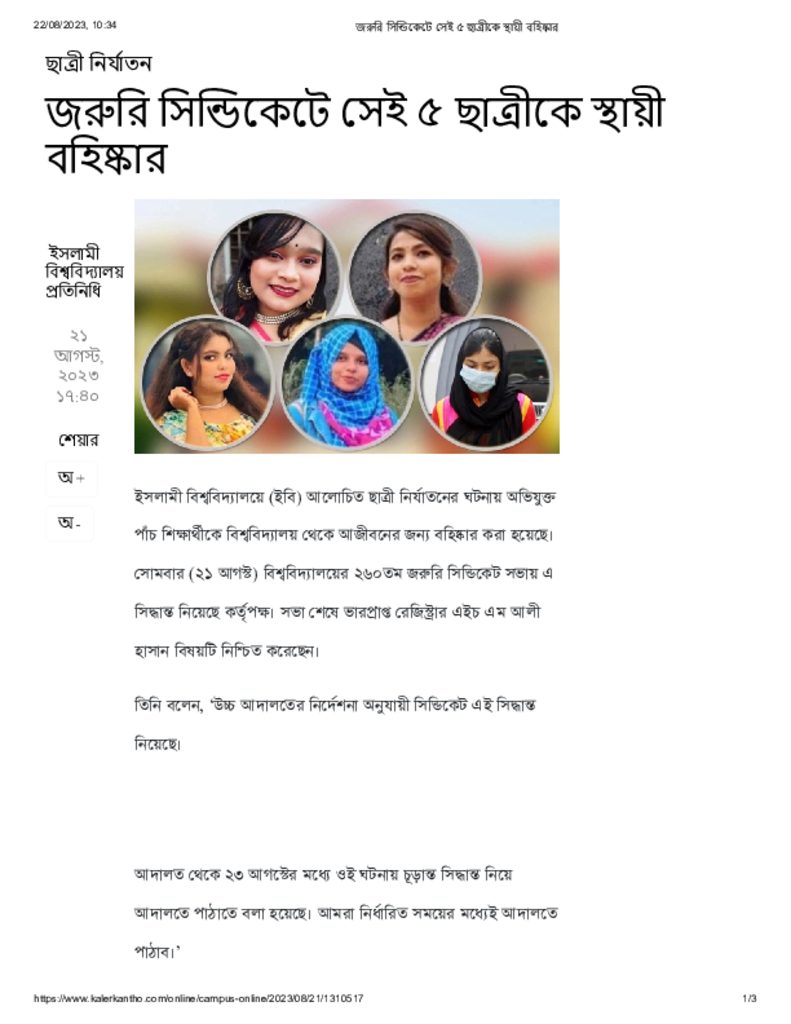 জরুরি সিন্ডিকেটে সেই ৫ ছাত্রীকে স্থায়ী বহিষ্কার