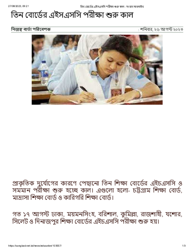 তিন বোর্ডের এইসএসসি পরীক্ষা শুরু কাল _ সংবাদ অনলাইন Published on 26 August 2023 Newspaper দৈনিক সংবাদ Category Public Examination Public Examination HSC Download
