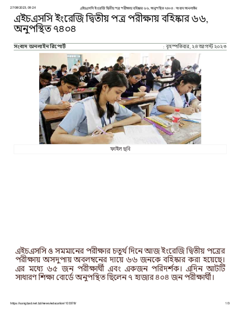 এইচএসসি ইংরেজি দ্বিতীয় পত্র পরীক্ষায় বহিষ্কার ৬৬, অনুপস্থিত ৭৪০৪ _ সংবাদ অনলাইন Published on 24 August 2023 Newspaper দৈনিক সংবাদ Category Public Examination Public Examination HSC Download