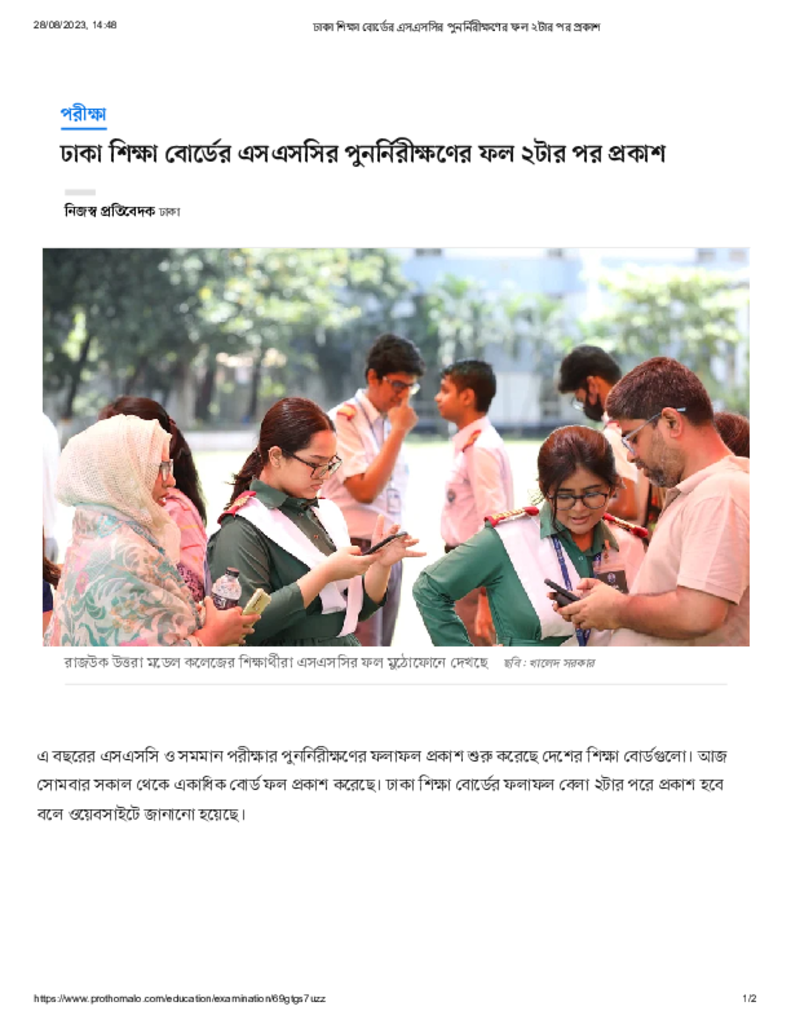 ঢাকা শিক্ষা বোর্ডের এসএসসির পুনর্নিরীক্ষণের ফল ২টার পর প্রকাশ Published on 28 August 2023 Newspaper দৈনিক প্রথম আলো Category Public Examination Public Examination HSC Download