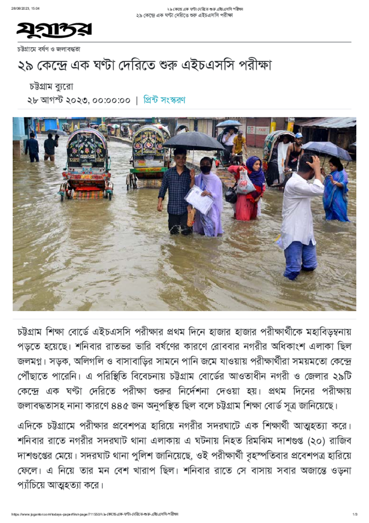 ২৯ কেন্দ্রে এক ঘণ্টা দেরিতে শুরু এইচএসসি পরীক্ষা Published on 28 August 2023 Newspaper দৈনিক যুগান্তর Category Public Examination Public Examination HSC Download