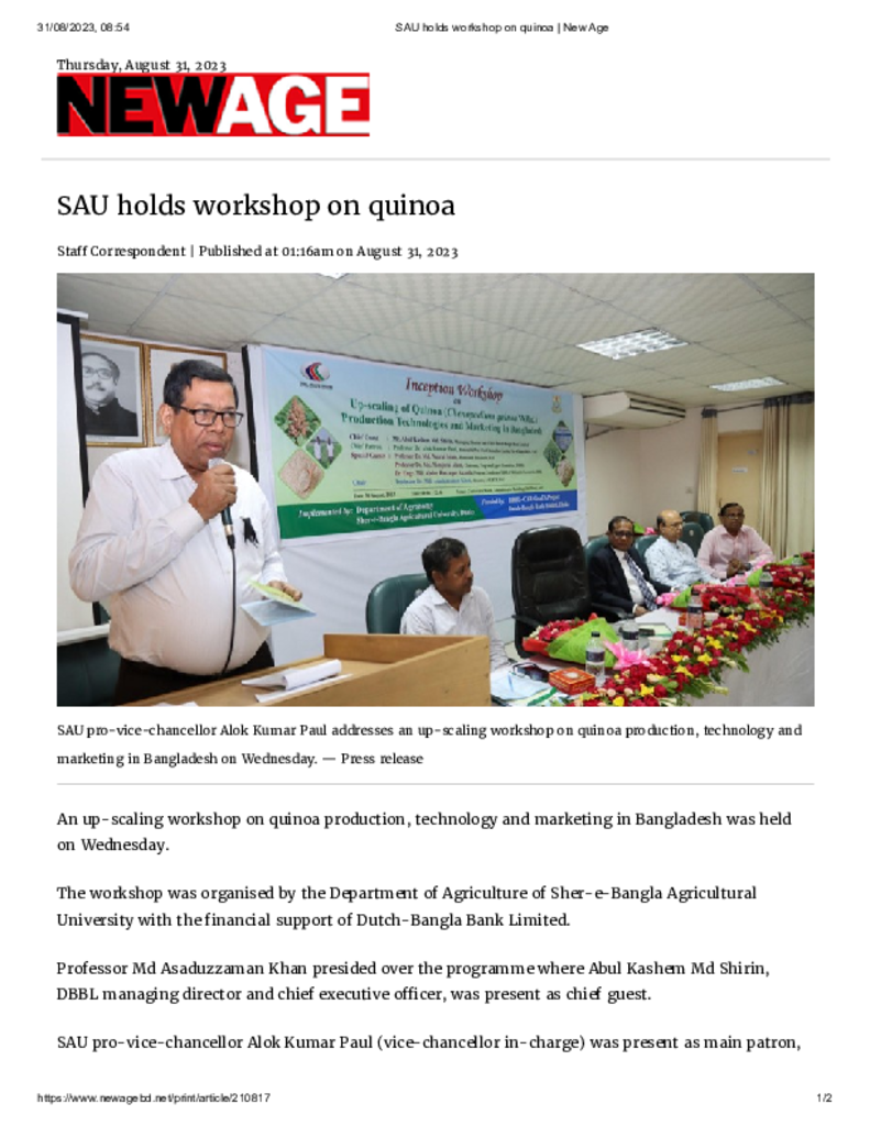 SAU holds workshop on quinoa _ New Age Published on 30 August 2023 Newspaper New Age Category Professional Education General Education Download