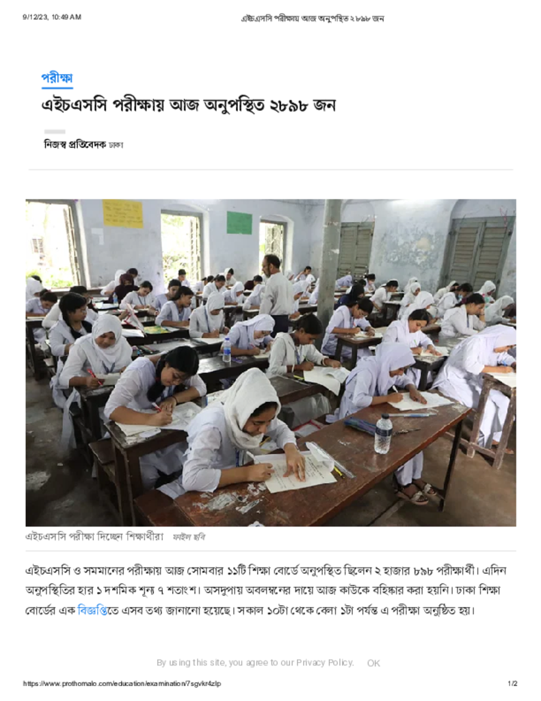 এইচএসসি পরীক্ষায় আজ অনুপস্থিত ২৮৯৮ জন.pdf Published on 11 September 2023 Newspaper দৈনিক প্রথম আলো Category Public Examination Public Examination HSC Download
