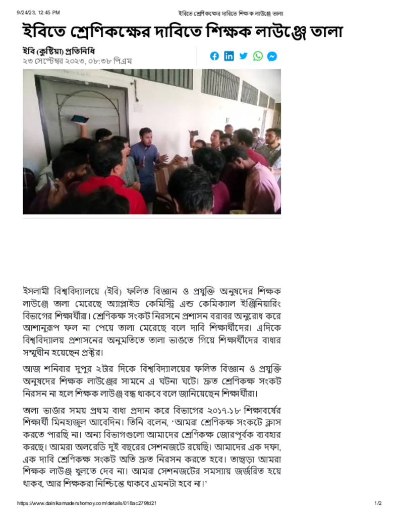 ইবিতে শ্রেণিকক্ষের দাবিতে শিক্ষক লাউঞ্জে তালা Published on 23 September 2023 Newspaper দৈনিক আমাদের সময় Category Campus Terrorism General Education Download