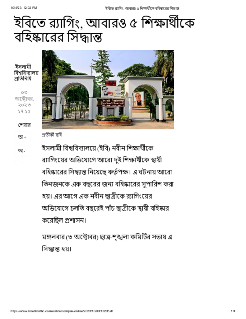 ইবিতে র্যাগিং, আবারও ৫ শিক্ষার্থীকে বহিষ্কারের সিদ্ধান্ত Published on 03 October 2023 Newspaper দৈনিক কালের কন্ঠ Category Campus Terrorism General Education Download
