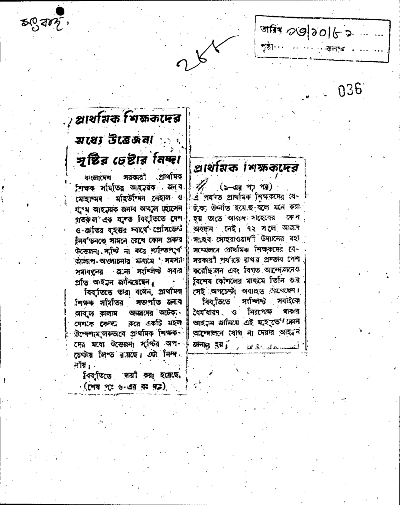 প্রাথমিক শিক্ষকদের মধ্যে উত্তেজেনা সৃষ্টির চেষ্টায় নিন্দা Published on Newspaper দৈনিক সংবাদ Category General Education Download