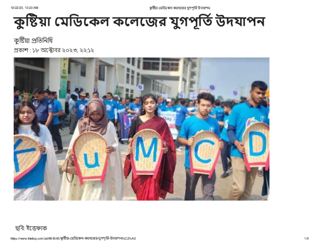 কুষ্টিয়া মেডিকেল কলেজের যুগপূর্তি উদযাপন Published on 18 October 2023 Newspaper দৈনিক ইত্তেফাক Category Professional Education Professional Education Medical Download