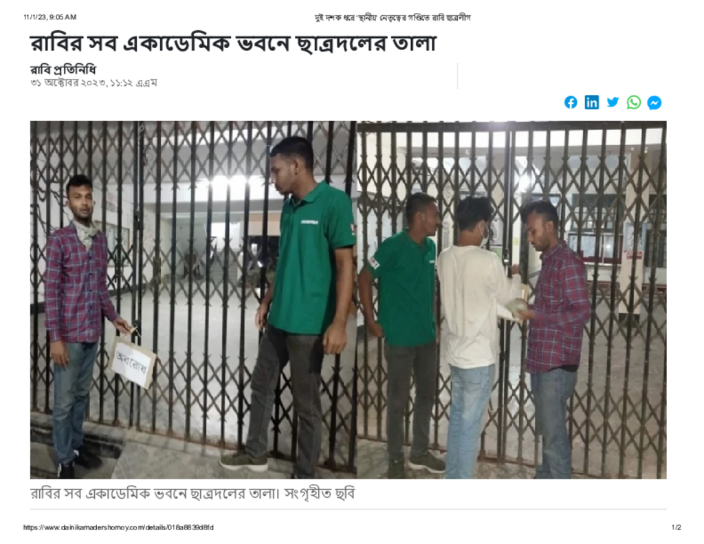 রাবির সব একাডেমিক ভবনে ছাত্রদলের তালা.pdf Published on 31 October 2023 Newspaper দৈনিক আমাদের সময় Category Campus Terrorism General Education Download