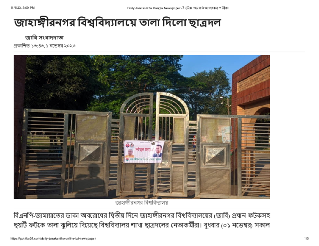 জাহাঙ্গীরনগর বিশ্ববিদ্যালয়ে তালা দিলো ছাত্রদল.pdf Published on 01 November 2023 Newspaper দৈনিক জনকণ্ঠ Category Campus Terrorism General Education Download