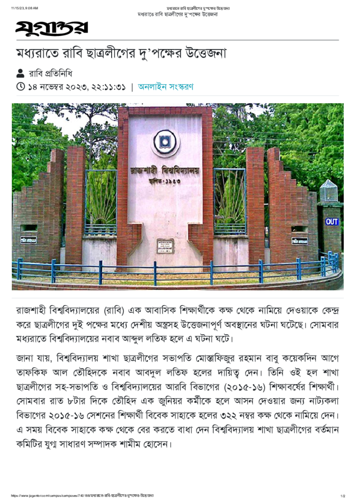 মধ্যরাতে রাবি ছাত্রলীগের দু’পক্ষের উত্তেজনা Published on 14 November 2023 Newspaper দৈনিক যুগান্তর Category Campus Terrorism General Education Download