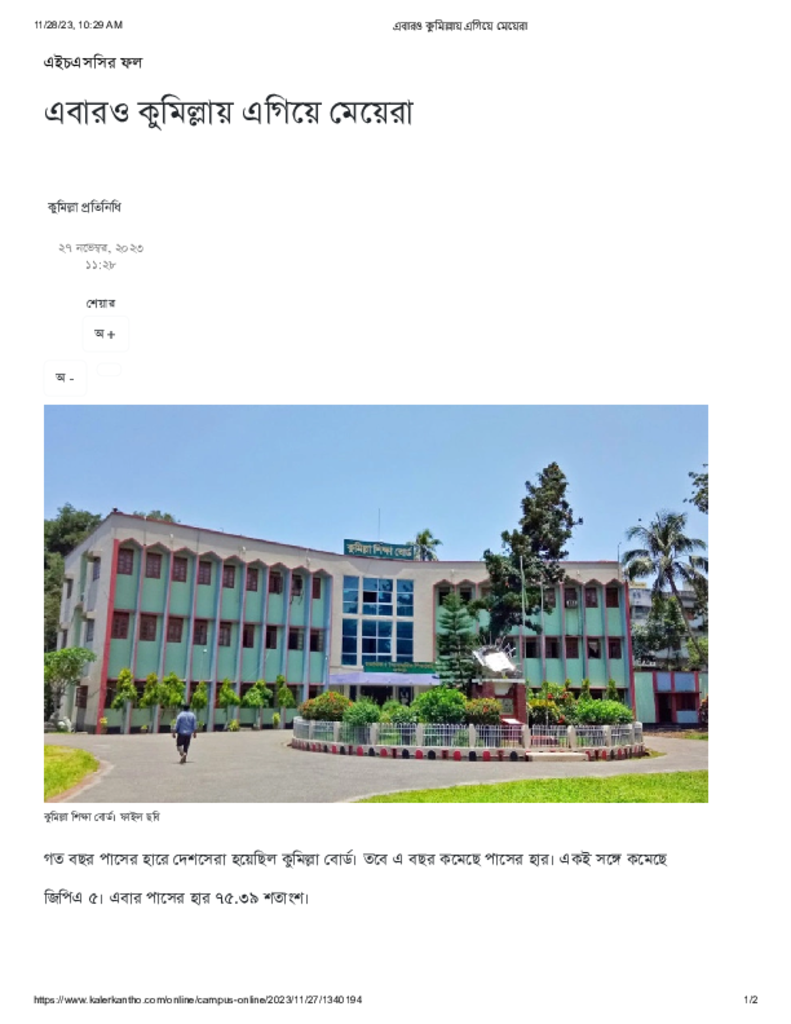 এবারও কুমিল্লায় এগিয়ে মেয়েরা