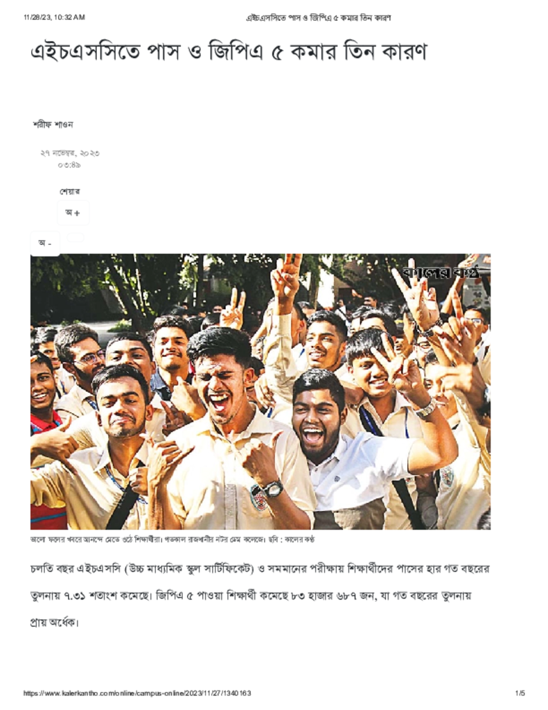 এইচএসসিতে পাস ও জিপিএ ৫ কমার তিন কারণ