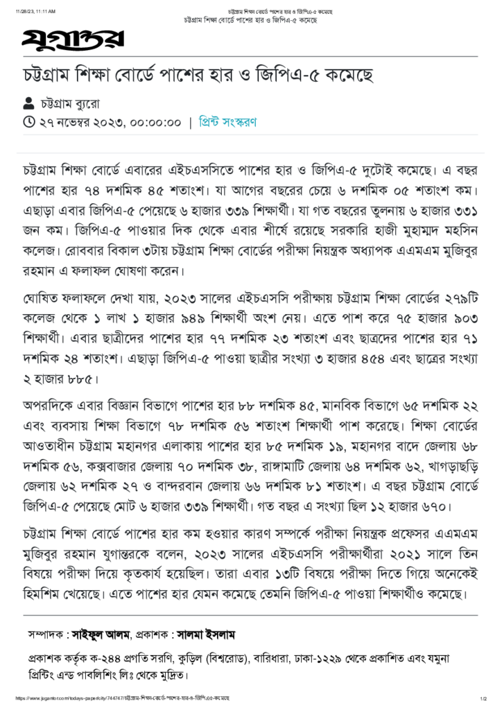 চট্টগ্রাম শিক্ষা বোর্ডে পাশের হার ও জিপিএ-৫ কমেছে