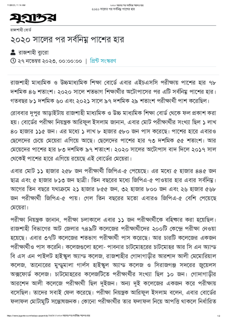 ২০২০ সালের পর সর্বনিম্ন পাশের হার