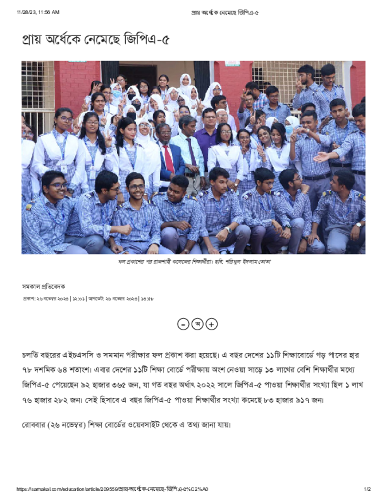 প্রায় অর্ধেকে নেমেছে জিপিএ-৫ Published on 26 November 2023 Newspaper দৈনিক সমকাল Category Public Examination Public Examination HSC Download