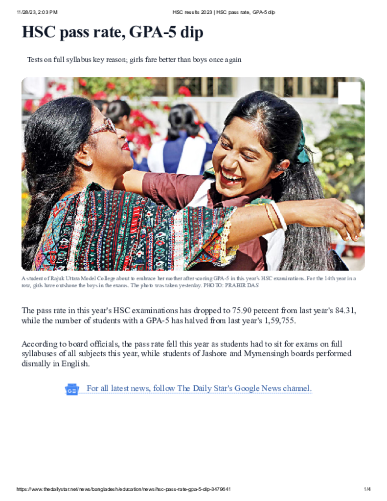 HSC results 2023 _ HSC pass rate, GPA-5 dip