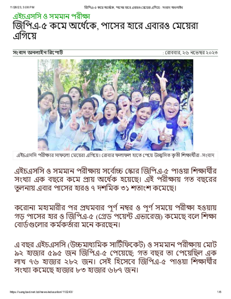 জিপিএ-৫ কমে অর্ধেকে, পাসের হারে এবারও মেয়েরা এগিয়ে _ সংবাদ অনলাইন Published on 26 November 2023 Newspaper দৈনিক সংবাদ Category Public Examination Public Examination HSC Download