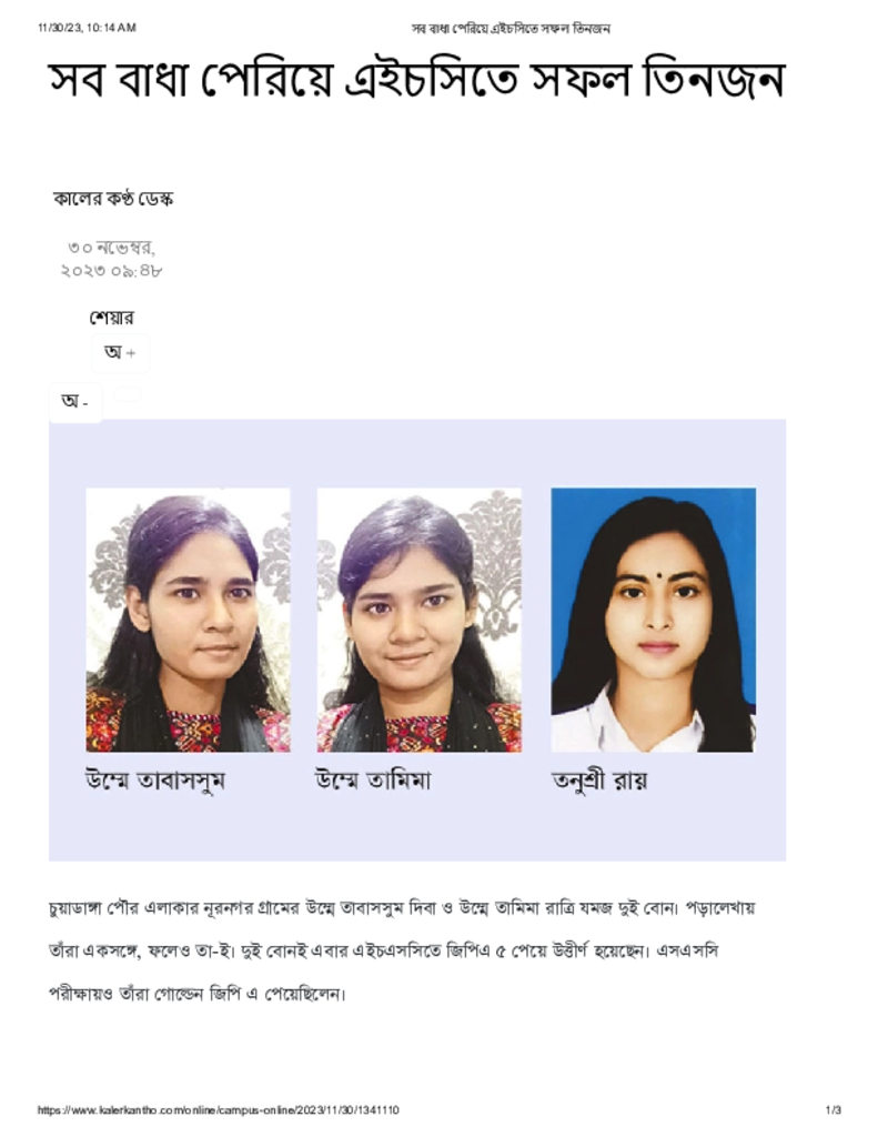 সব বাধা পেরিয়ে এইচসিতে সফল তিনজন