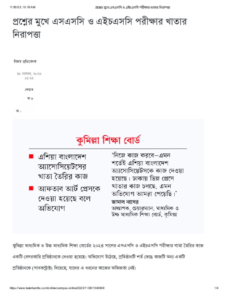 প্রশ্নের মুখে এসএসসি ও এইচএসসি পরীক্ষার খাতার নিরাপত্তা Published on 29 November 2023 Newspaper দৈনিক কালের কন্ঠ Category Public Examination Download