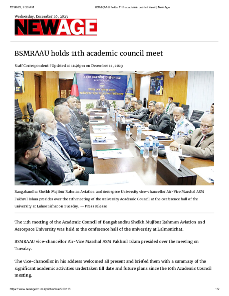 BSMRAAU holds 11th academic council meet _ New Age Published on 12 December 2023 Newspaper New Age Category Professional Education Professional Education Medical Download