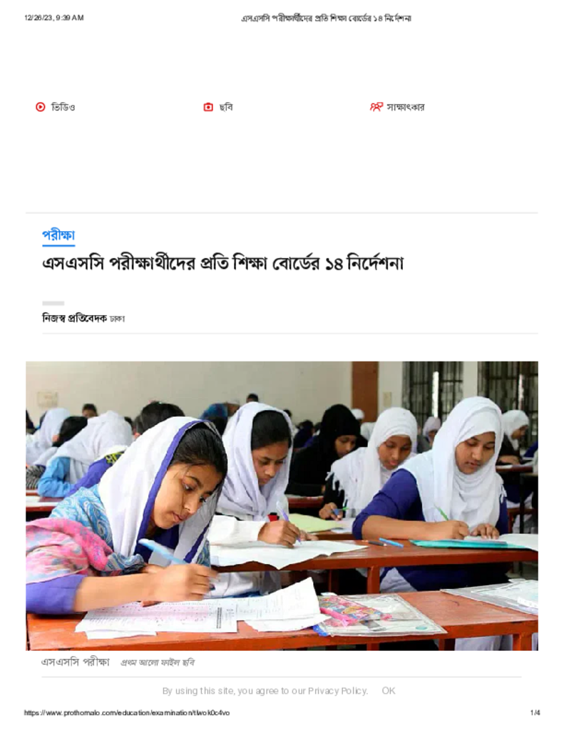 এসএসসি পরীক্ষার্থীদের প্রতি শিক্ষা বোর্ডের ১৪ নির্দেশনা