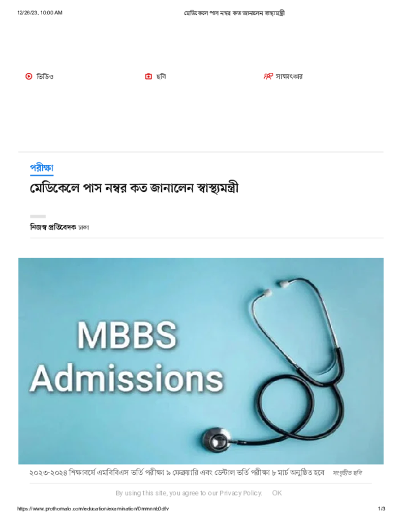 মেডিকেলে পাস নম্বর কত জানালেন স্বাস্থ্যমন্ত্রী Published on 25 December 2023 Newspaper দৈনিক প্রথম আলো Category Professional Education Professional Education Medical Download