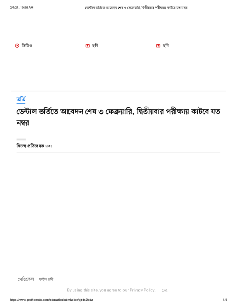 ডেন্টাল ভর্তিতে আবেদন শেষ ৩ ফেব্রুয়ারি, দ্বিতীয়বার পরীক্ষায় কাটবে যত নম্বর Published on 02 February 2024 Newspaper দৈনিক প্রথম আলো Category Professional Education Professional Education Medical Download