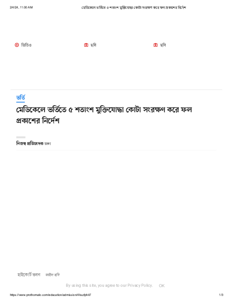 মেডিকেলে ভর্তিতে ৫ শতাংশ মুক্তিযোদ্ধা কোটা সংরক্ষণ করে ফল প্রকাশের নির্দেশ