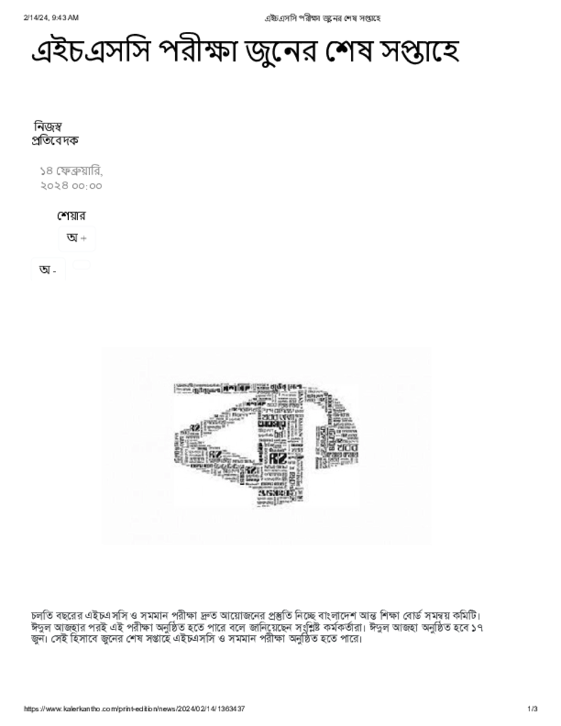এইচএসসি পরীক্ষা জুনের শেষ সপ্তাহে