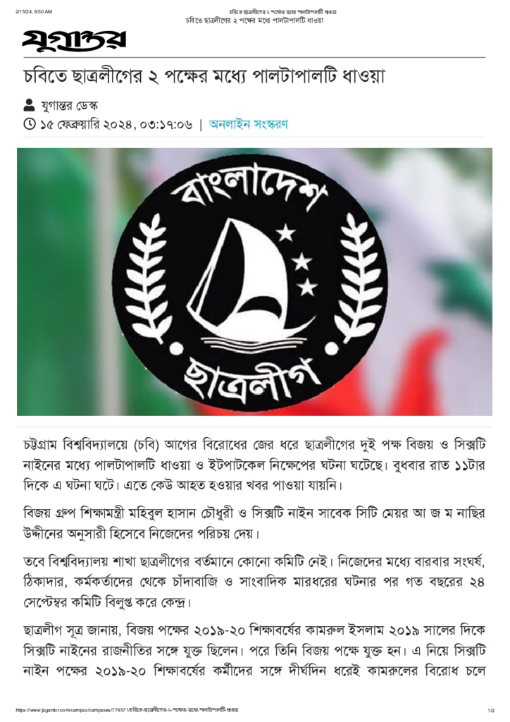 চবিতে ছাত্রলীগের ২ পক্ষের মধ্যে পালটাপালটি ধাওয়া