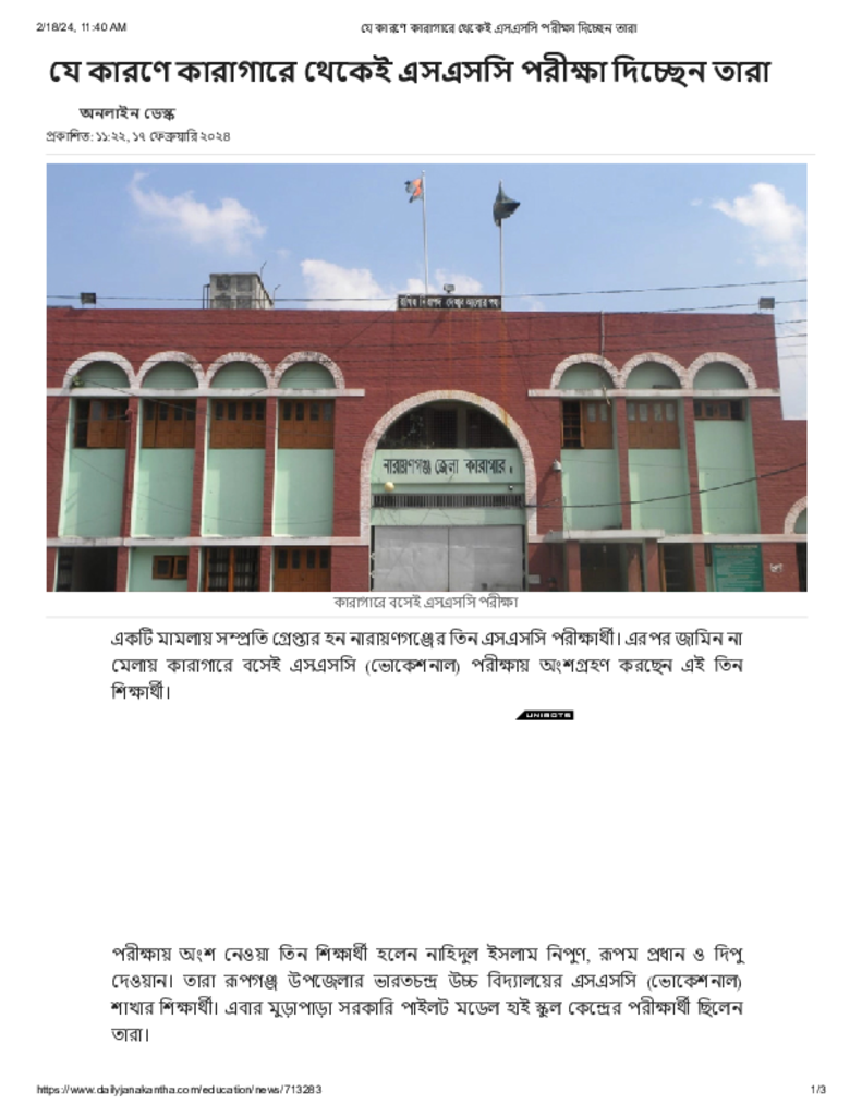 যে কারণে কারাগারে থেকেই এসএসসি পরীক্ষা দিচ্ছেন তারা Published on 17 February 2024 Newspaper দৈনিক জনকণ্ঠ Category Personal Opinion / Discussion / Commentary Public Examination SSC Download