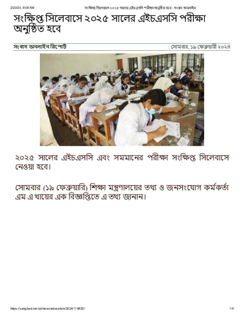 সংক্ষিপ্ত সিলেবাসে ২০২৫ সালের এইচএসসি পরীক্ষা অনুষ্ঠিত হবে _ সংবাদ অনলাইন
