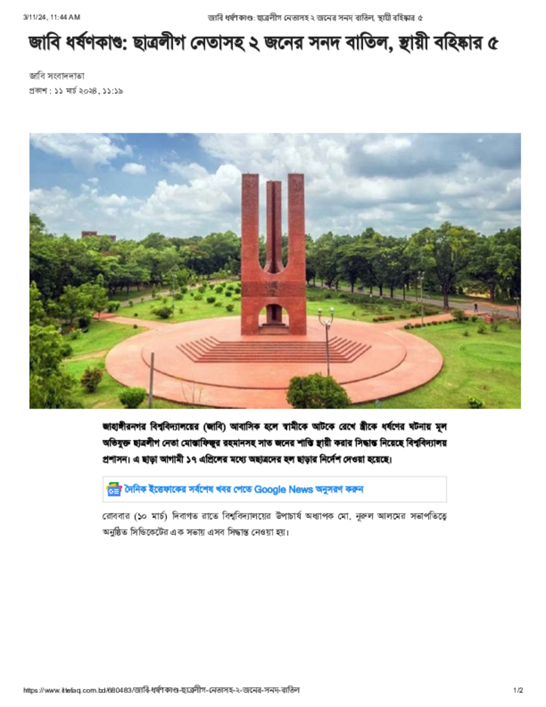 ধর্ষণকাণ্ড_ ছাত্রলীগ নেতাসহ ২ জনের সনদ বাতিল, স্থায়ী বহিষ্কার ৫