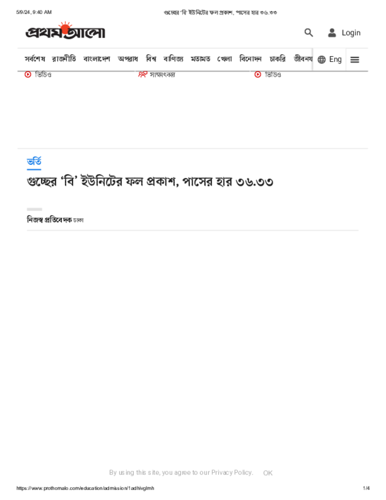 গুচ্ছের ‘বি’ ইউনিটের ফল প্রকাশ, পাসের হার ৩৬.৩৩.pdf Published on 05 May 2024 Newspaper দৈনিক প্রথম আলো Category Campus Terrorism General Education Download