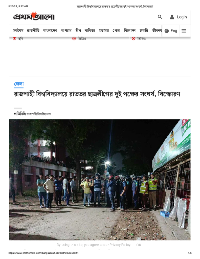 রাজশাহী বিশ্ববিদ্যালয়ে রাতভর ছাত্রলীগের দুই পক্ষের সংঘর্ষ, বিস্ফোরণ.pdf