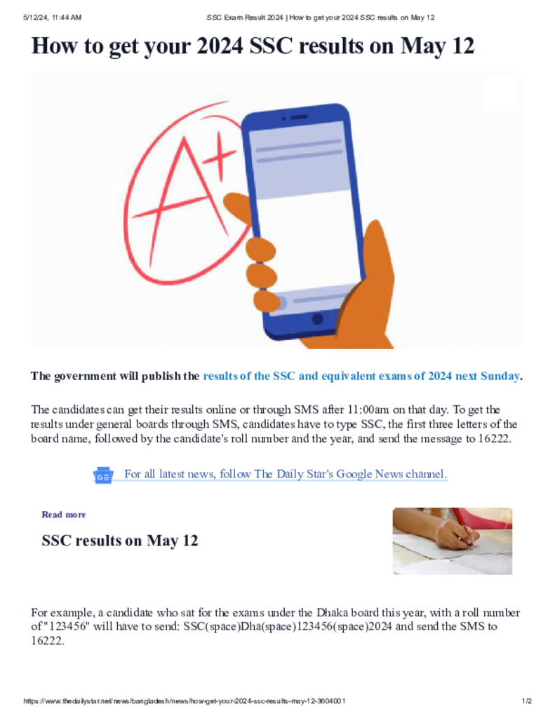 SSC Exam Result 2024 _ How to get your 2024 SSC results on May 12.pdf Published on 07 May 2024 Newspaper The Daily Star Category Public Examination Public Examination SSC Download