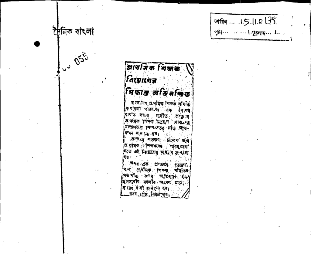 প্রাথমিক শিক্ষক নিয়োগের সিদ্ধান্ত Published on Newspaper দৈনিক বাংলা Category General Education Download