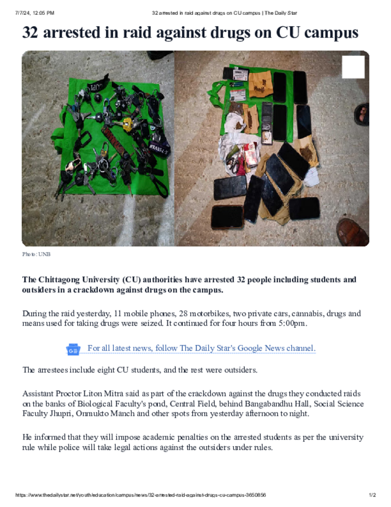 32 arrested in raid against drugs on CU campus _ The Daily Star.pdf
