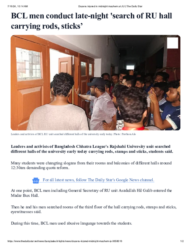 Dozens injured in midnight mayhem at JU _ The Daily Star.pdf Published on 16 July 2024 Newspaper The Daily Star Category Campus Terrorism Download
