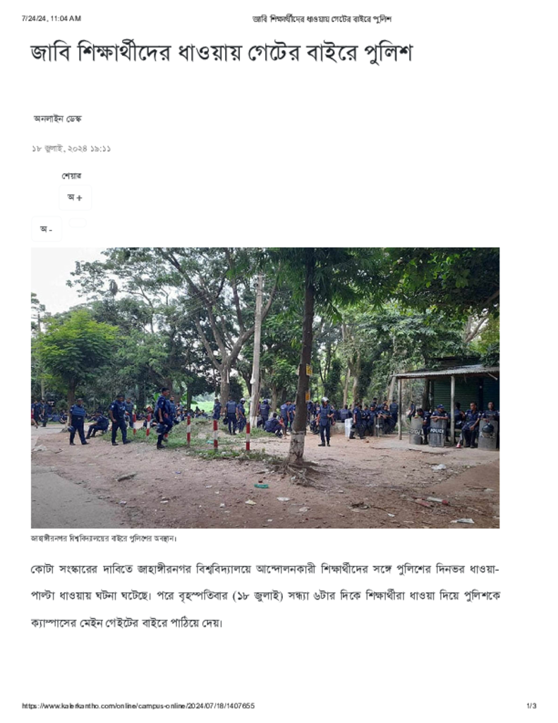 জাবি শিক্ষার্থীদের ধাওয়ায় গেটের বাইরে পুলিশ.pdf Published on 18 July 2024 Newspaper দৈনিক কালের কন্ঠ Category Campus Terrorism General Education Download