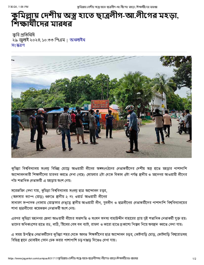 কুমিল্লায় দেশীয় অস্ত্র হাতে ছাত্রলীগ-আ.লীগের মহড়া, শিক্ষার্থীদের মারধর.pdf