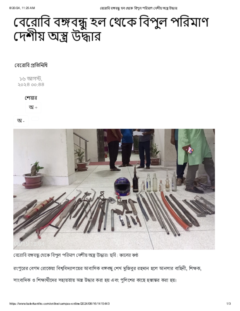 বেরোবি বঙ্গবন্ধু হল থেকে বিপুল পরিমাণ দেশীয় অস্ত্র উদ্ধার.pdf