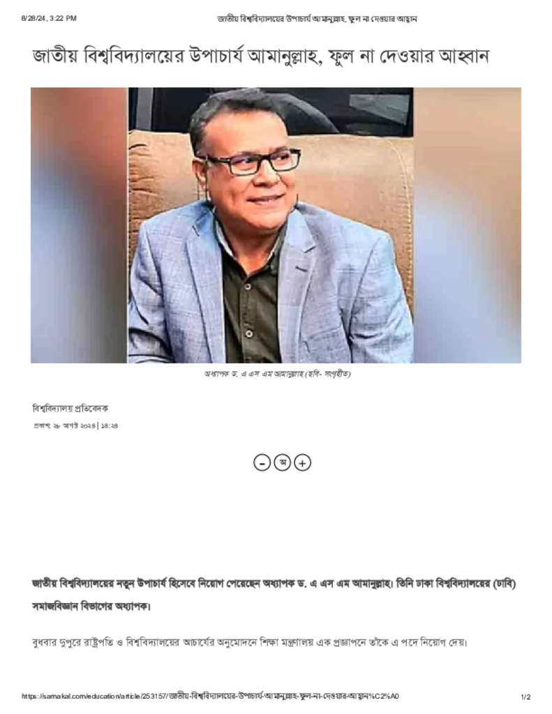 জাতীয় বিশ্ববিদ্যালয়ের উপাচার্য আমানুল্লাহ, ফুল না দেওয়ার আহ্বান.pdf