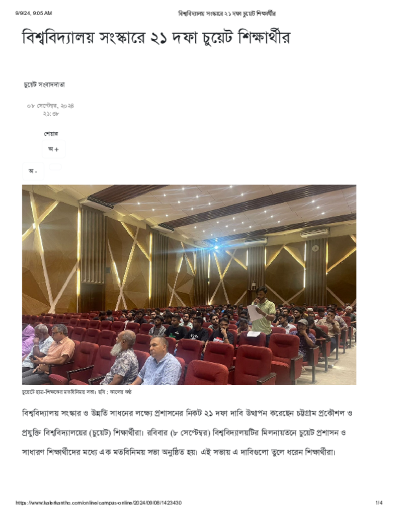 বিশ্ববিদ্যালয় সংস্কারে ২১ দফা চুয়েট শিক্ষার্থীর.pdf Published on 08 September 2024 Newspaper দৈনিক কালের কন্ঠ Category Personal Opinion / Discussion / Commentary Professional Education Engineering Download