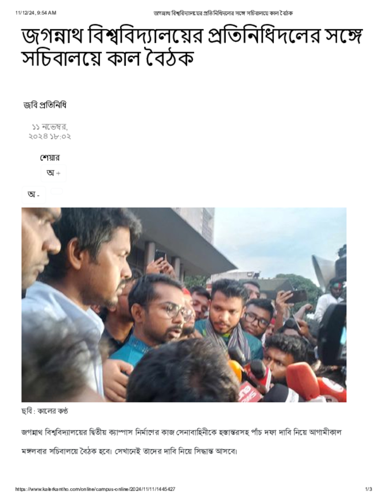 জগন্নাথ বিশ্ববিদ্যালয়ের প্রতিনিধিদলের সঙ্গে সচিবালয়ে কাল বৈঠক.pdf Published on 11 November 2024 Newspaper দৈনিক কালের কন্ঠ Category General Education General Education Download