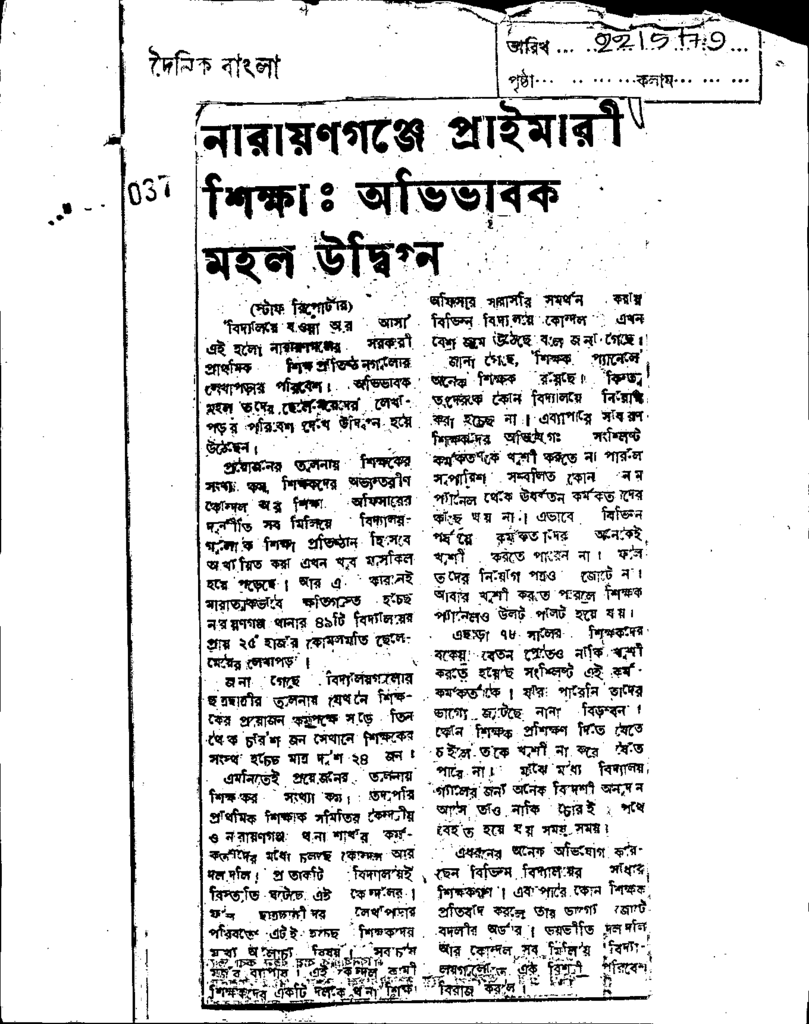 নানা কায়দায় প্রাইমারী শিক্ষা পর্ব চলছে Published on Newspaper দৈনিক বাংলা Category General Education Download
