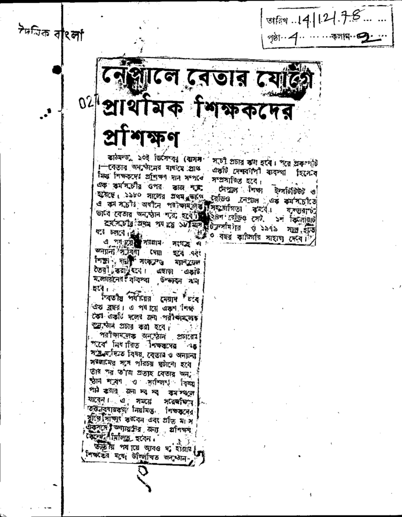নেপালে বেতার যোগে প্রাথমিক শিক্ষকদের প্রশিক্ষণ