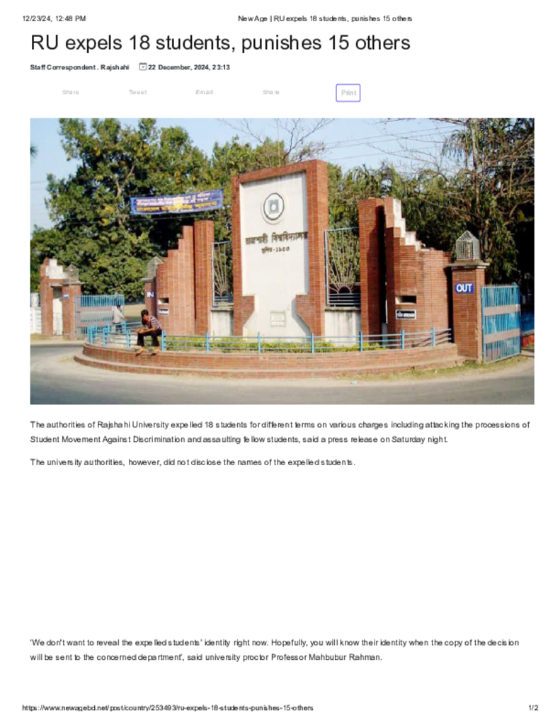 New Age _ RU expels 18 students, punishes 15 others.pdf Published on 22 December 2024 Newspaper New Age Category Campus Terrorism General Education Download