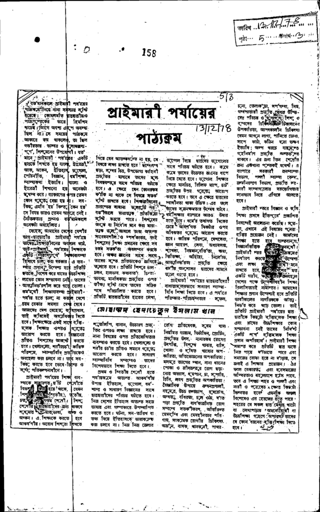 প্রাইমারী পর্যায়ের পাঠ্যক্রম