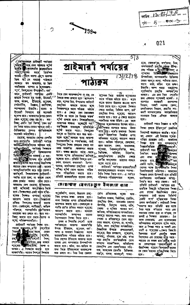 প্রাইমারী পার্যায়ের পাঠ্যক্রম